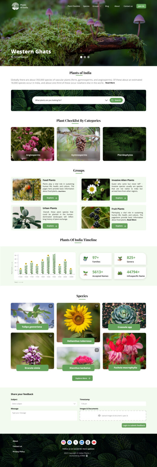 ATREE (Ashoka Trust for Research in Ecology and the Environment) has developed a website dedicated to providing detailed information about various plant species. The aim is to create an accessible, informative, and engaging platform for users ranging from casual plant enthusiasts to researchers and educators.